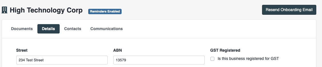 From here, you are a directed to a details screen allowing you to change Supplier details: